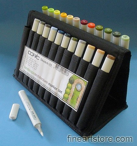 Sketch Landscape Arch. Wallet. Scores of anime, manga, and comics artists as well as landscape, product, architecture, and fashion designers prefer Copic markers because of their ultra-blendable, low odor, alcohol based inks. Unlike water-based inks, which tend to pill and oversoak the paper while blending, Copics mix on the surface to deliver the wonderfully rich blends they’re known for. This outstanding performance has distinguished Copic markers as the celebrated coloring tool within professional, semi-professional and hobby circles alike.
