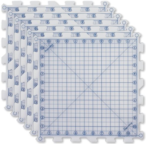 Puzzlemat 24x36 Set. Six 12x12 inch mats that are designed to snap together like a puzzle to make One 24x36 or One 12x72 inch mat or any variation you could possible need. You can add additional sets to make an even bigger rotary cutting area if you need to. Long life storage case included (12.75x12.75x1 inch). NOTE: Mats are not self-healing.