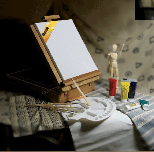 Why Not Artist Painting Set in Wooden Box Easel with Oil Paints, Brushes, Palette, Canvas & Painting Knife. With Special Price