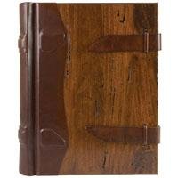- Rustic antiqued wood cover highlighted with real Italian leather ribbed spine and closures